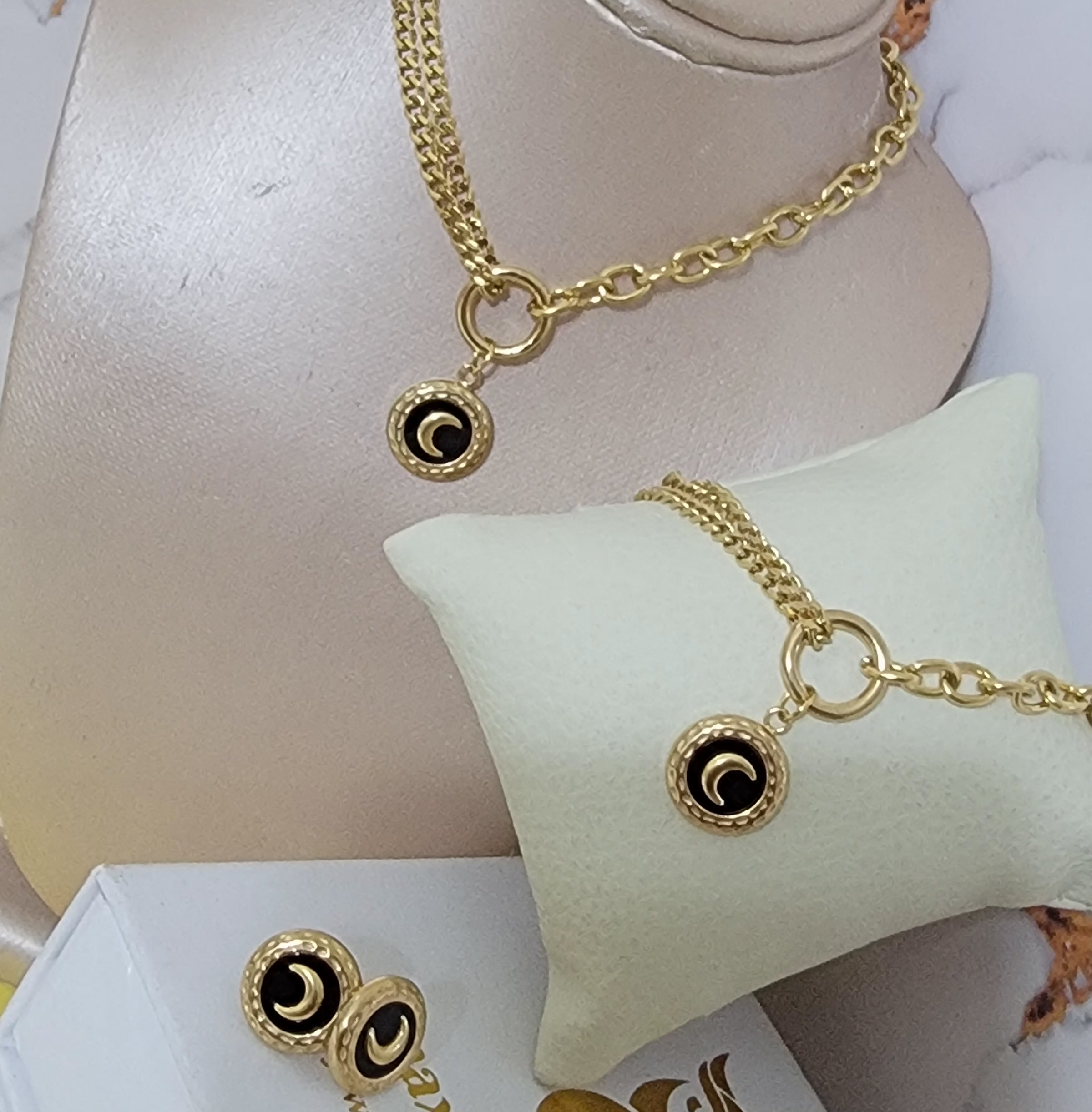 Set stainless steel, con diseno luna, y color negro, 18 pulgadas