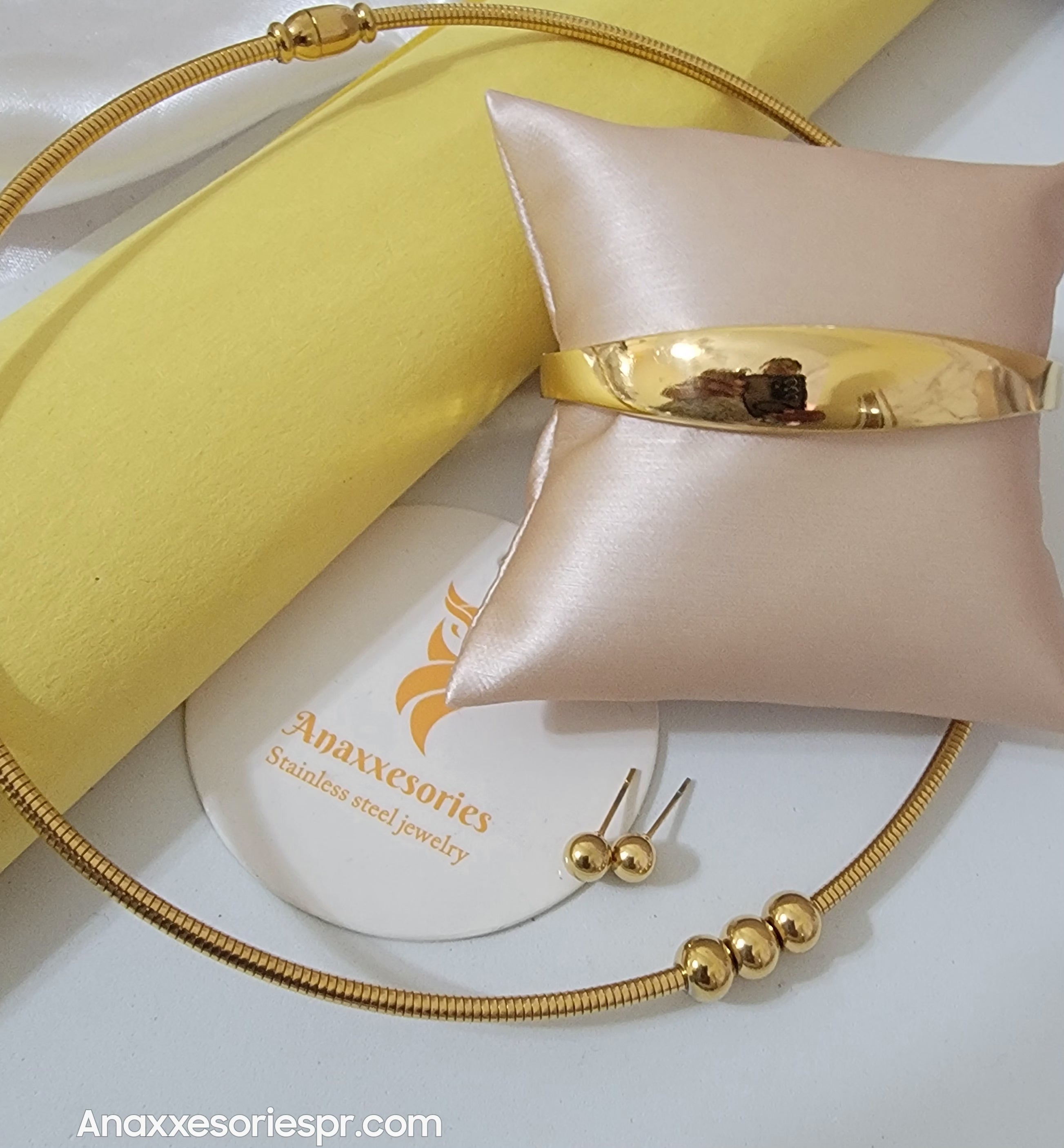 Joyas en acero inoxidable con acabado dorado, elegantes y versátiles. Diseños que aportan brillo y sofisticación a cualquier look.