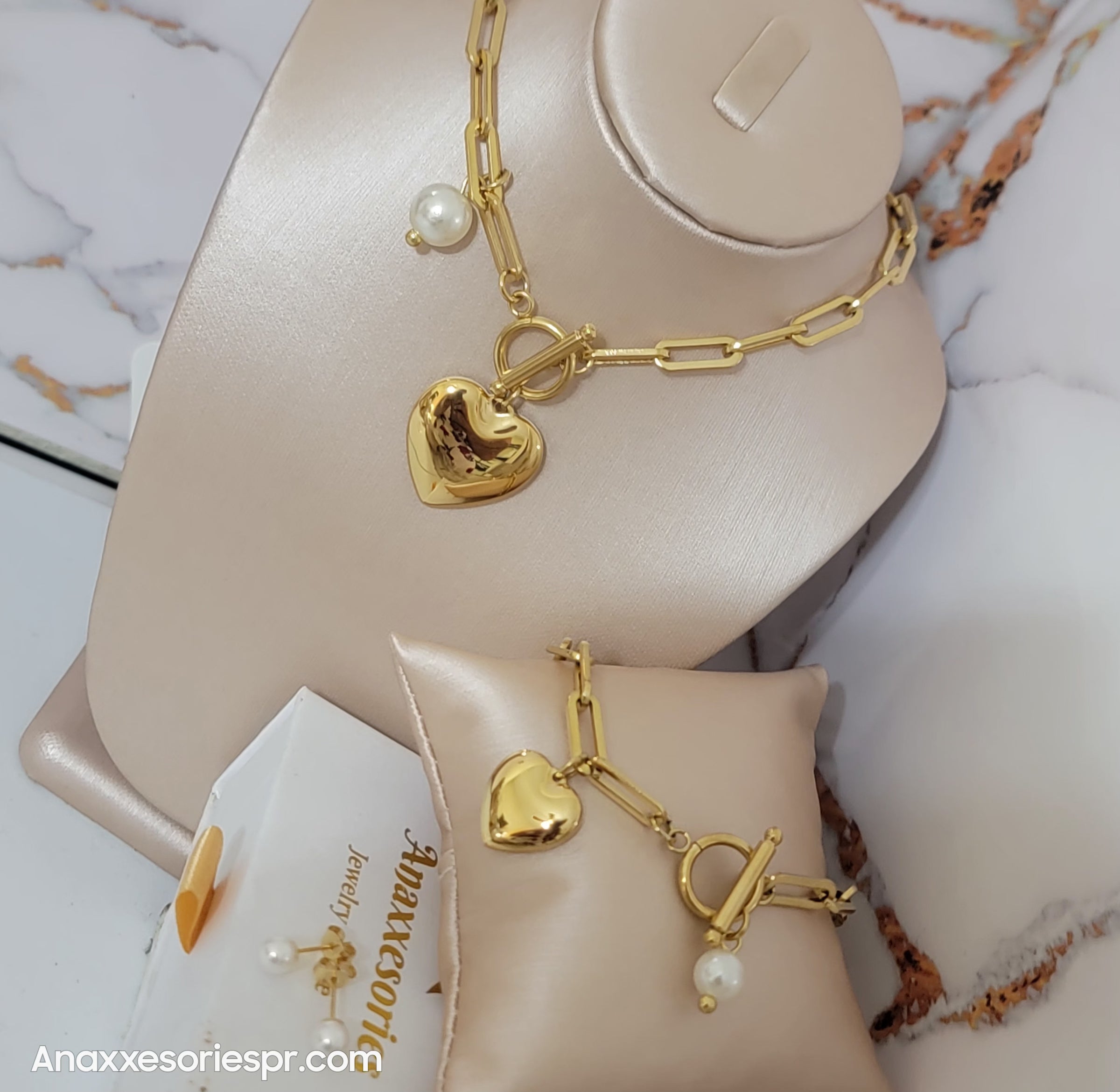 Set stainless steel, corazon tono dorado 18 pulgadas