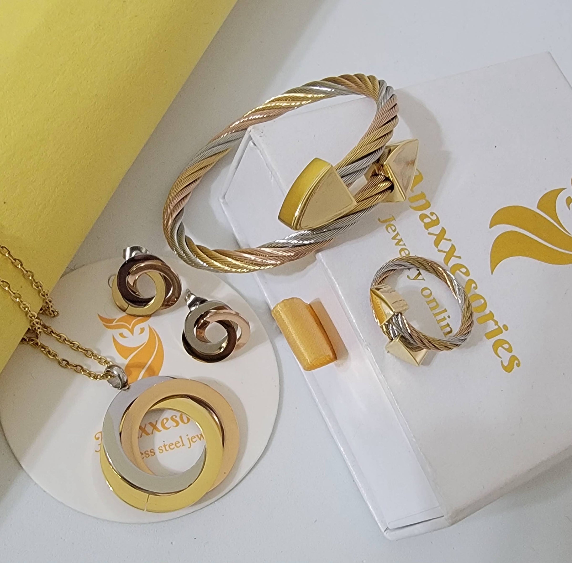 Set triple tono, con pulsera estilo cable marino, stainless steel